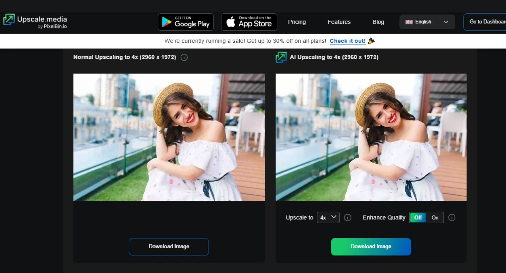 - Click on upscale the image
